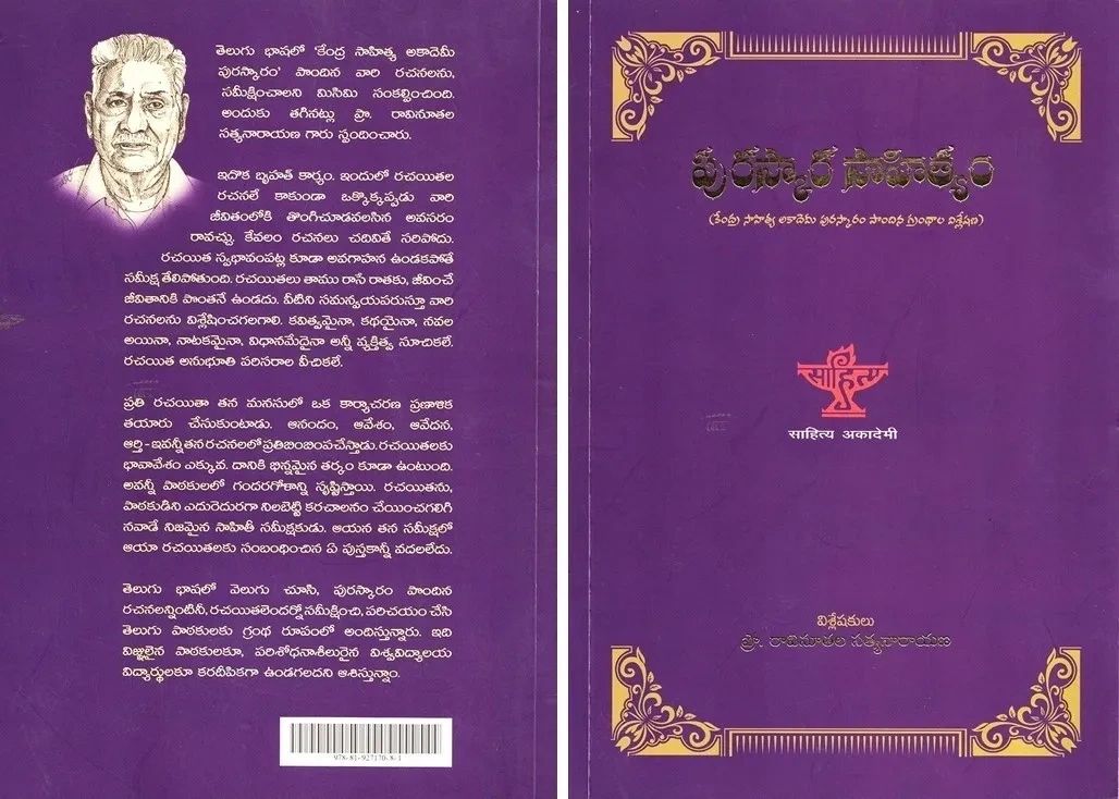The book is a compilation of analytical essays on renowned authors in Telugu Literature and their works that were honoured with the Sahitya Akademi Award.